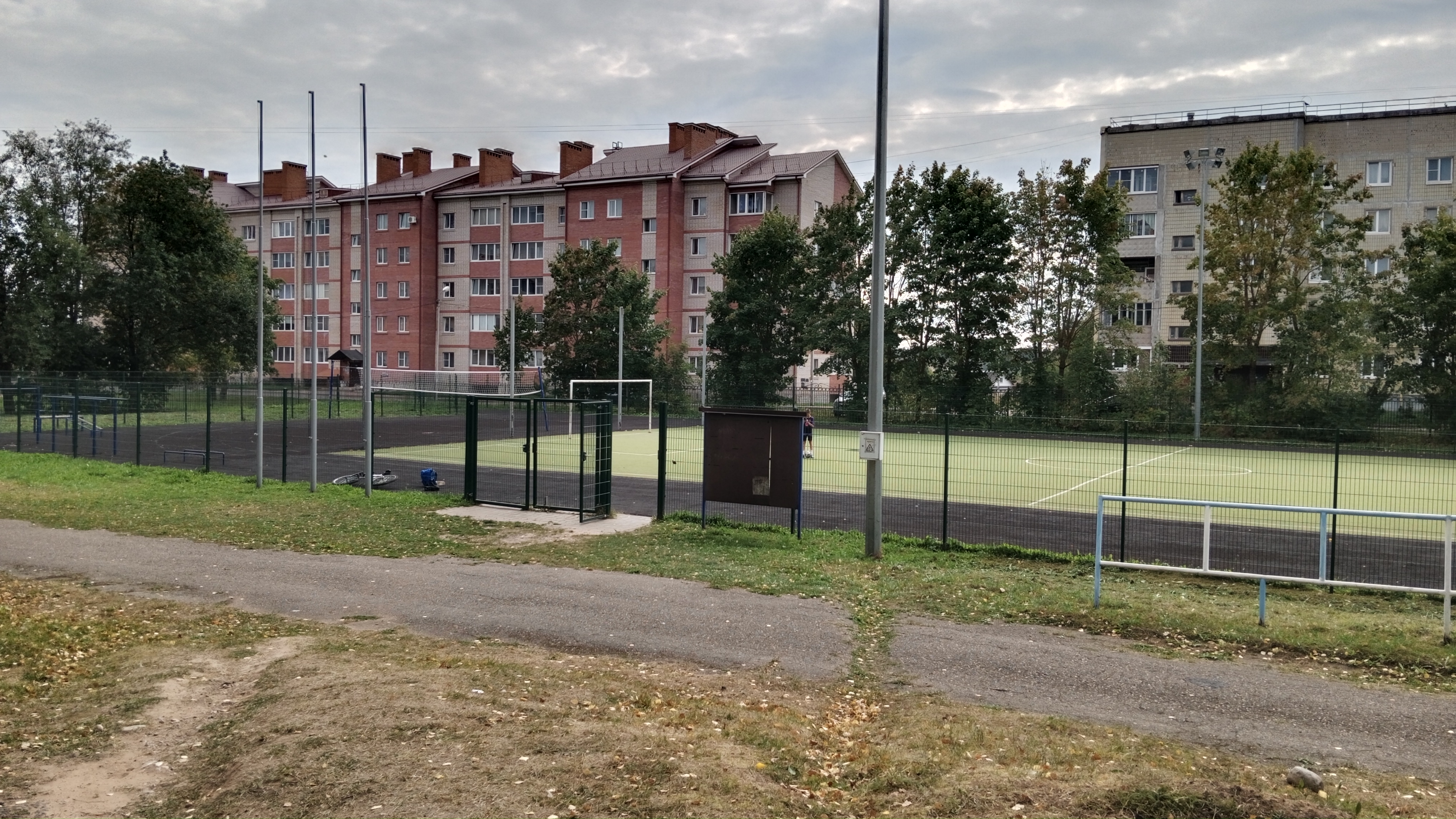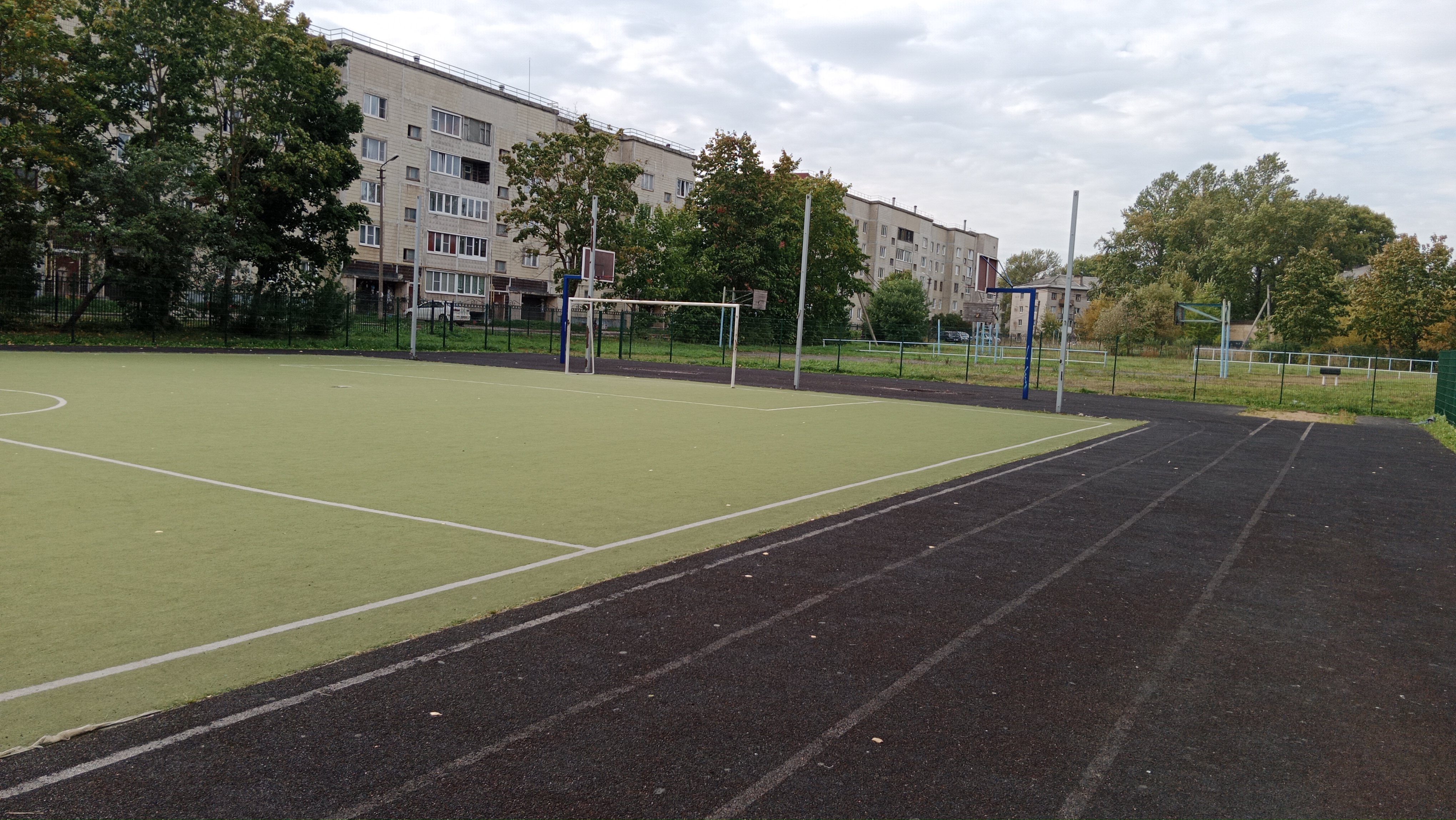 На территории школы оборудована спортивная площадка. На ней есть беговая дорожка, прыжковая яма, разнообразное спортивное оборудование, универсальный корт с травмобезопасным покрытием, игровое поле для мини-футбола (пл. 920 м2), площадки игровая баскетбольная (пл. 120 м²), волейбольная (пл. 162 м²) и для занятий ОФП (пл. 1462 м²).