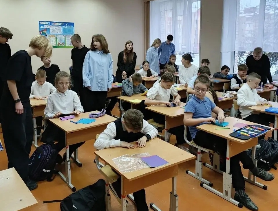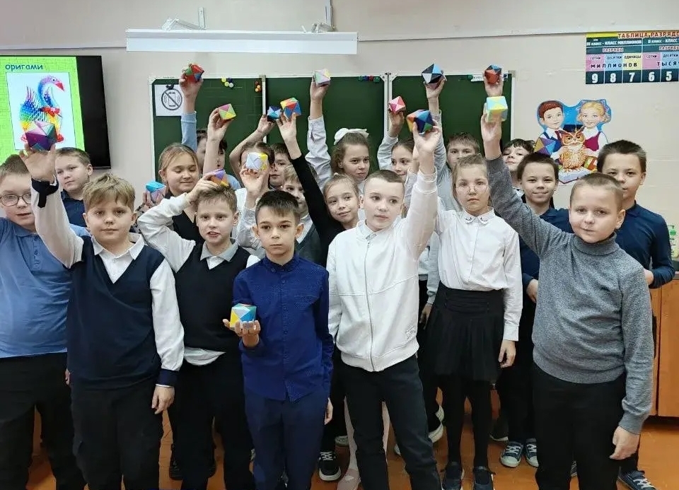 Учащиеся 8а класса для ребят из 4в провели занятие «Модульное оригами»